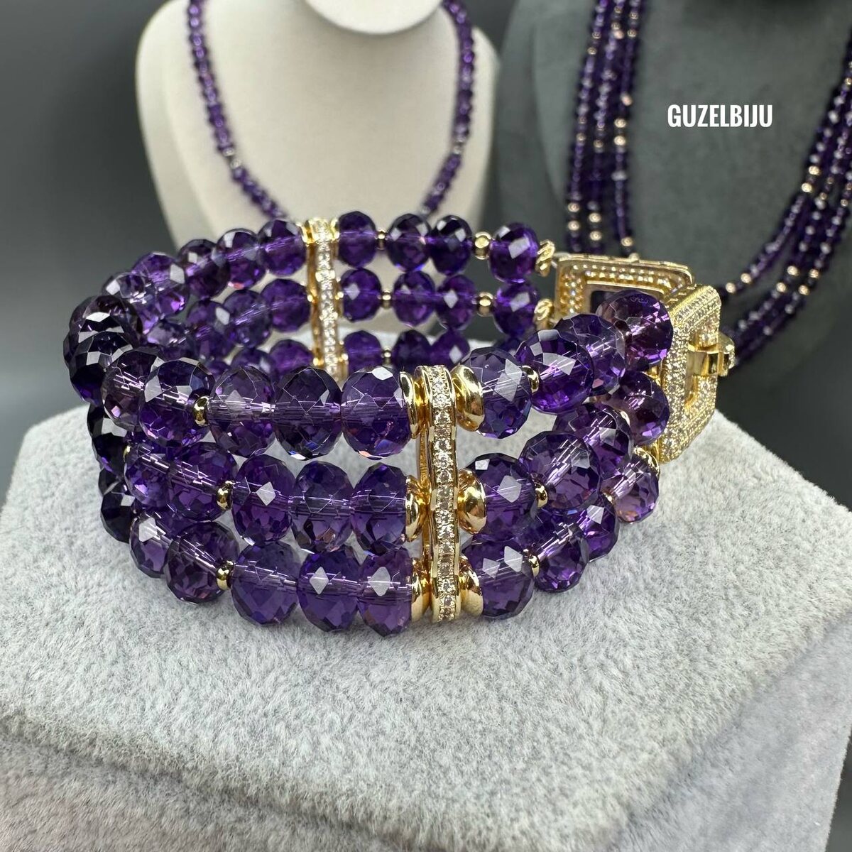 Аметист ювелирного качества закончился очень быстро. Скоро снова приедут ниточки этих аметистов, кому не досталось - достанется! Все ваши предоплаты в силе. Так что ждём камушки, мои королевы. Цены: ожерелье 5500 руб до 50 см, браслет в 3 ряда 7500 руб, серьги в комплект к ожерелью или браслету 1700 руб, замочки Корея, фурнитура Корея или нержавеющая сталь. Сборка идеальная на толстые ювелирные тросики. Желающие забронировать этот волшебный аметист - пишите в личку на Гузель Иванову, срок изготовления максимум две недели.