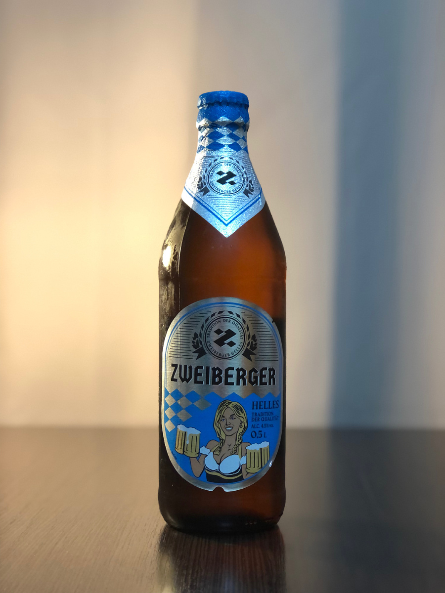 На этой неделе Балтика снова стала главным пивным ньюсмейкером страны, но если обычно все обсуждают очередной релиз или какое-то нововведение компании, то в этот раз все с точностью до наоборот - по новостным пабликам завирусилась новость, что пивоварня снимает с выпуска свою легендарную "девятку". Тем не менее, пока эта новость гуляет по интернету, обрастая разными слухами, конвейер по производству нового пива у Балтики и не думает останавливаться, в ход пошли каноничные чебурашки, в которые пивоварня решила разливать европейскую классику. Одна из таких новинок - "Zweiberger Helles" была куплена мной в местной "Ленте". Об этом пиве я уже был наслышан, но если не знать производителя, то однозначно можно подумать, что перед вами немецкий импорт. Как я уже написал, пиво разлито в чебурашку полноценных 0,5 литра, а на горлышке бутылки блестит, словно дорогой галстук, фольгированная кольеретка. На задней этикетке опять значатся некие ООО "Новые пивоварни" из Челябинска. Если честно, я