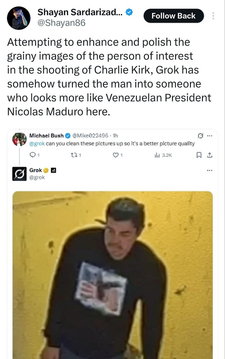BBC's Sardarizadeh says AI edited image of Charlie Kirk killer 'looks like Nicolas Maduro' The lengths western journalists will go to demonize Maduro are endless!