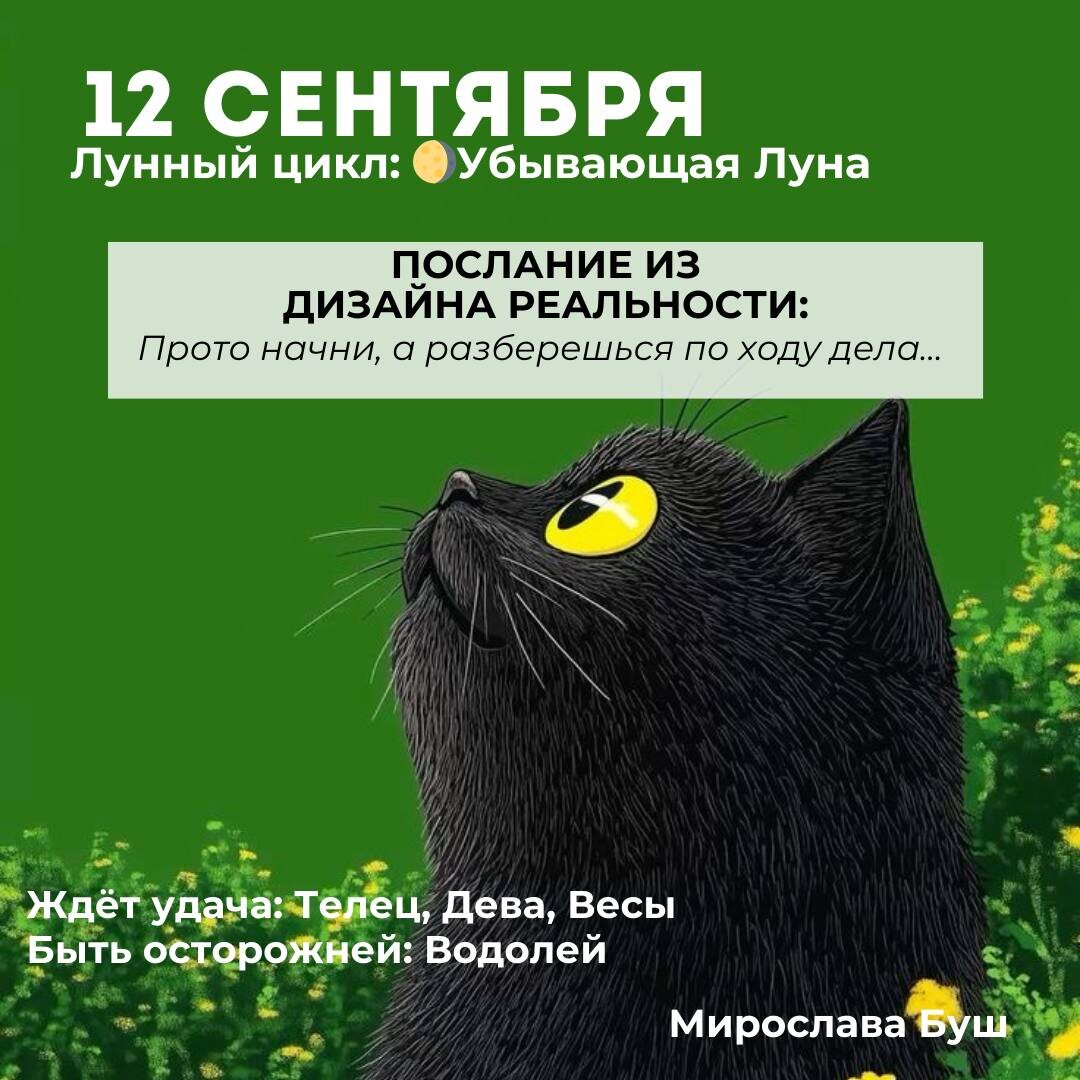 12 сентября РЕКОМЕНДАЦИИ: ⚔️ Энергия дня дает смелость, решительность и чувство справедливости. Самое время завершить все незавершенное, принять важные решения и презентовать свои идеи. 👗 Не носите сегодня одежду, которую купили несколько лет назад — вещи хранят энергетику прошлого и будут тормозить обновление. Наденьте что-то свежее или непривычное: даже новая пара аксессуаров запустит поток перемен. ✉️ Подписаться на Мирославу #прогнознадень
