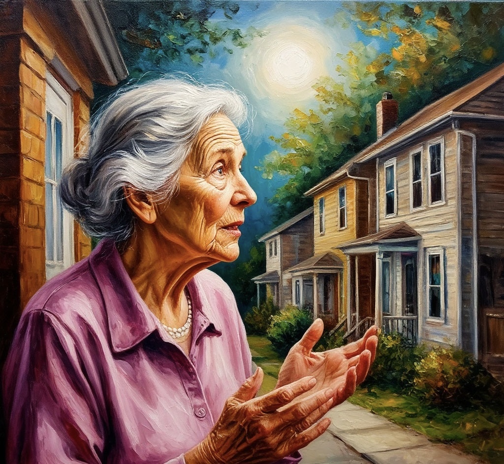 Пожилая женщина, живёт в частном доме. Икон много, свечи горят.
