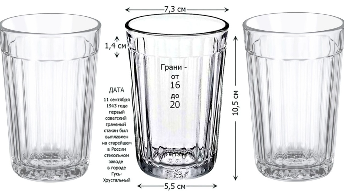 Кстати! 11 сентября 1943 года - день рождения гранёного стакана. В этот день в 1943 году на стекольном заводе в Гусь-Хрустальном был выпущен граненый стакан с гладким ободком сверху, ставший эталоном для этой посуды. По одной из версий дизайн которого придумала скульптор Вера Мухина.