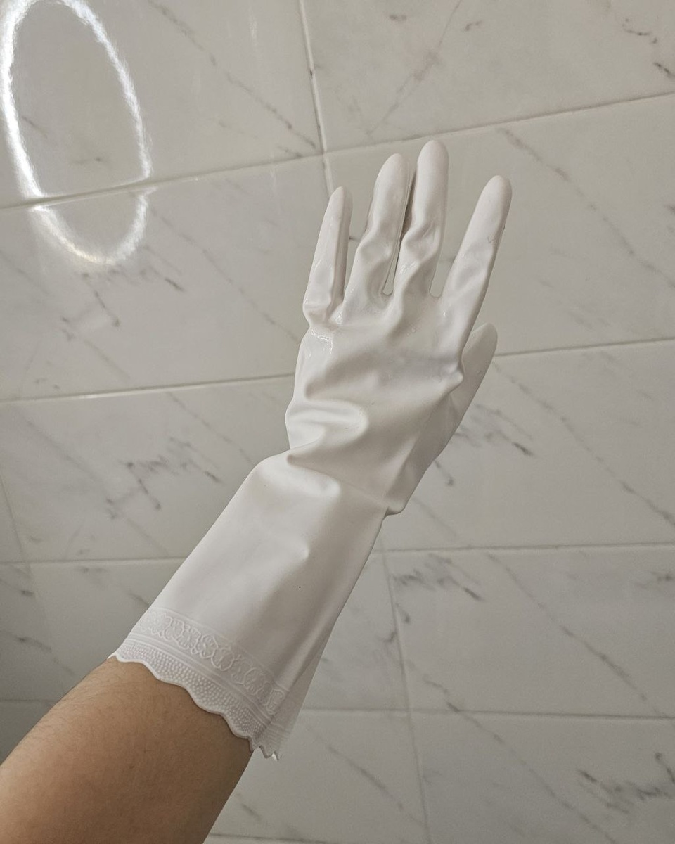Каждый раз, когда у меня начинается приступ генеральной ночной уборки, я первым делом мажу руки кремчиком и надеваю мягкие перчатки (Да, вот именно эти). Они внутри словно облачко: приятные, руки не преют, не натирают, зато создают эффект маски. Хватает их минимум на год