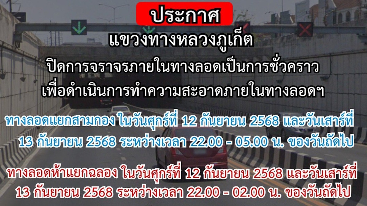 Два пхукетских тоннеля закроют ночью 12 сентября Сразу два тоннеля на Пхукете будут закрыты для движения транспорта в ночь с 12 на 13 сентября для проведения в них генеральной уборки. Соответствующее уведомление выпустил накануне провинциальный офис Департамента скоростных магистралей (DOH Phuket). ⚠️Тоннель Chalong Underpass под кольцевой развязкой у пирса в Чалонге будет закрыт с 22:00 вечера 12 сентября до 5:00 утра 13 сентября. ⚠️Тоннель Samkong Underpass у супермаркета Lotus's Extra на шоссе Bypass Rd. будет закрыт с 22:00 вечера 12 сентября до 2:00 утра 13 сентября. Во время проведения работ движение будет осуществляться только по наземным полосам. Департамент скоростных магистралей принес извинения за возможные неудобства. Телефоны ведомства для справок – 076-21-21-79 (пхукетский офис) и 1586 (круглосуточная горячая линия). Также в публикации DOH Phuket повторяет традиционная просьба ведомства сообщать о замеченных проблемах на трассах, таких как неработающие светофоры, сло