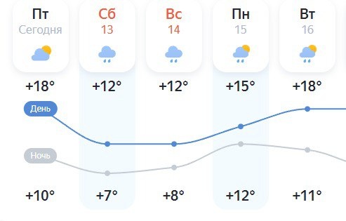 ☁️⛅⛈️Золотая осень отменяется: синоптики прогнозируют на выходные в Красноярском крае хмурость и осадки! В предстоящие выходные дни в центральных и южных районах Красноярского края, по данным Погоды на Яндекс, ожидается переменная облачность и небольшие дожди. В субботу днем воздух прогреется всего до +11 градусов, будет хмуро, утром возможен небольшой дождь. Синоптики прогнозируют холодный северный ветер, правда, его скорость составит только 2 м/с. К вечеру столбик термометра начнет опускаться, и в темное время суток +8. В воскресенье температура воздуха сохранится в тех же пределах: днем +11, ночью около +9 градусов. В течение дня преимущественно пасмурно и возможны осадки. Направление ветра изменится, он подует с запада и принесет незначительное потепление. В понедельник днем до +15 градусов.