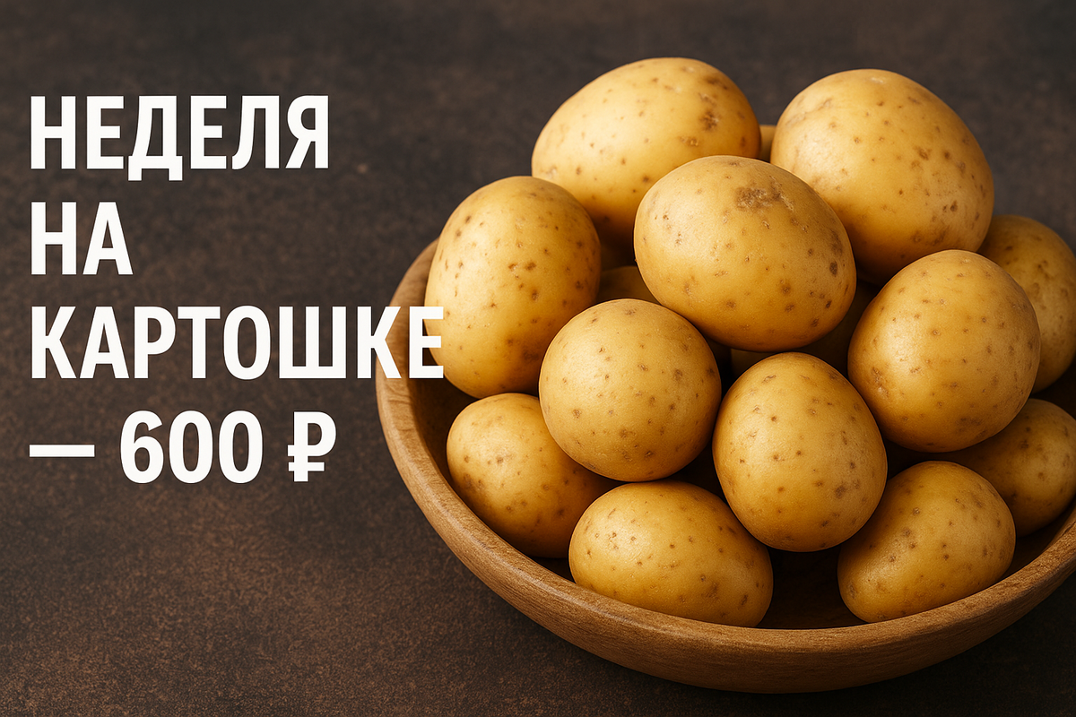 Картошка — самый доступный продукт в магазинах. Её можно готовить по-разному, она сытная и стоит копейки. Но можно ли прожить неделю только на картошке? Я решил проверить. Я пошёл в ближайший магазин и взял: Итого: 600 ₽ на неделю еды. Обычно я трачу 2 000–2 500 ₽, то есть экономия в 4 раза. День 1–2. Восторг