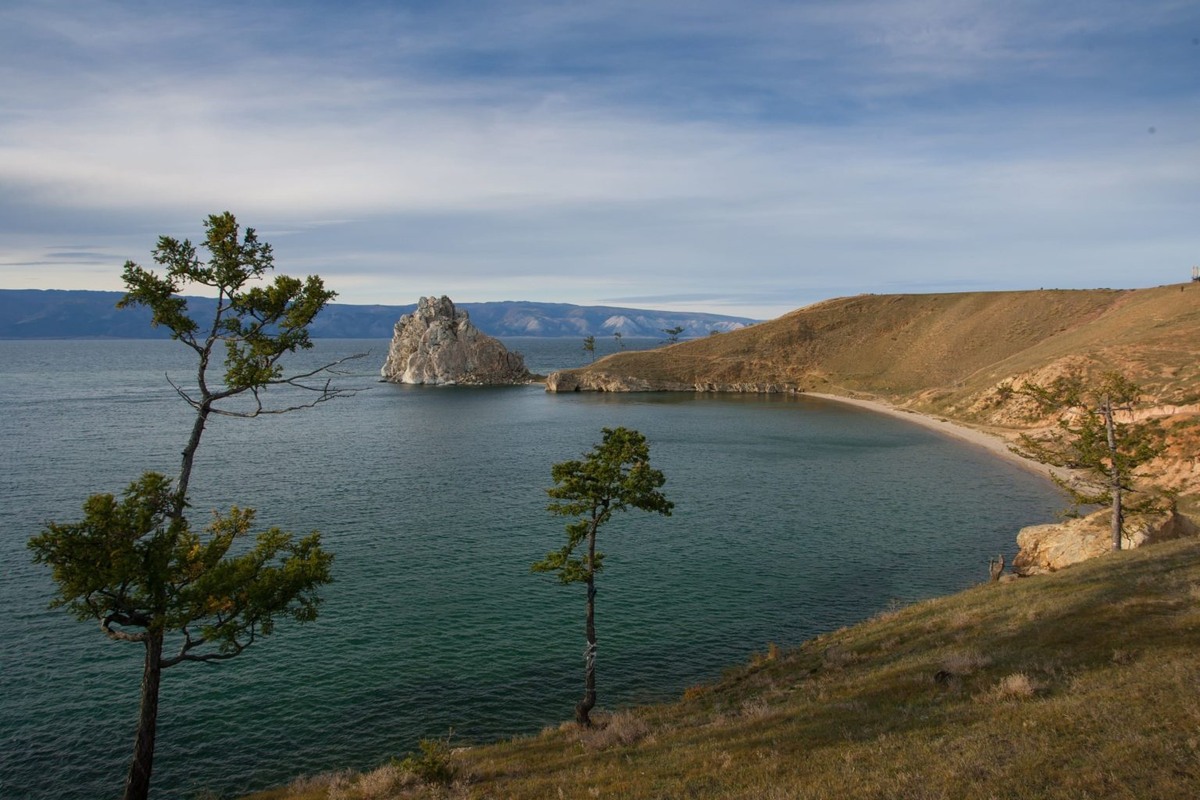 Малое море осенью — это гладкая вода, порой слегка подернутая дымкой, и теплые цвета высохших трав на фоне светлых скал. Здесь тише, чем на юге Байкала, а пейзажи хорошо подходят для неспешных пеших экскурсий или фотопрогулок.