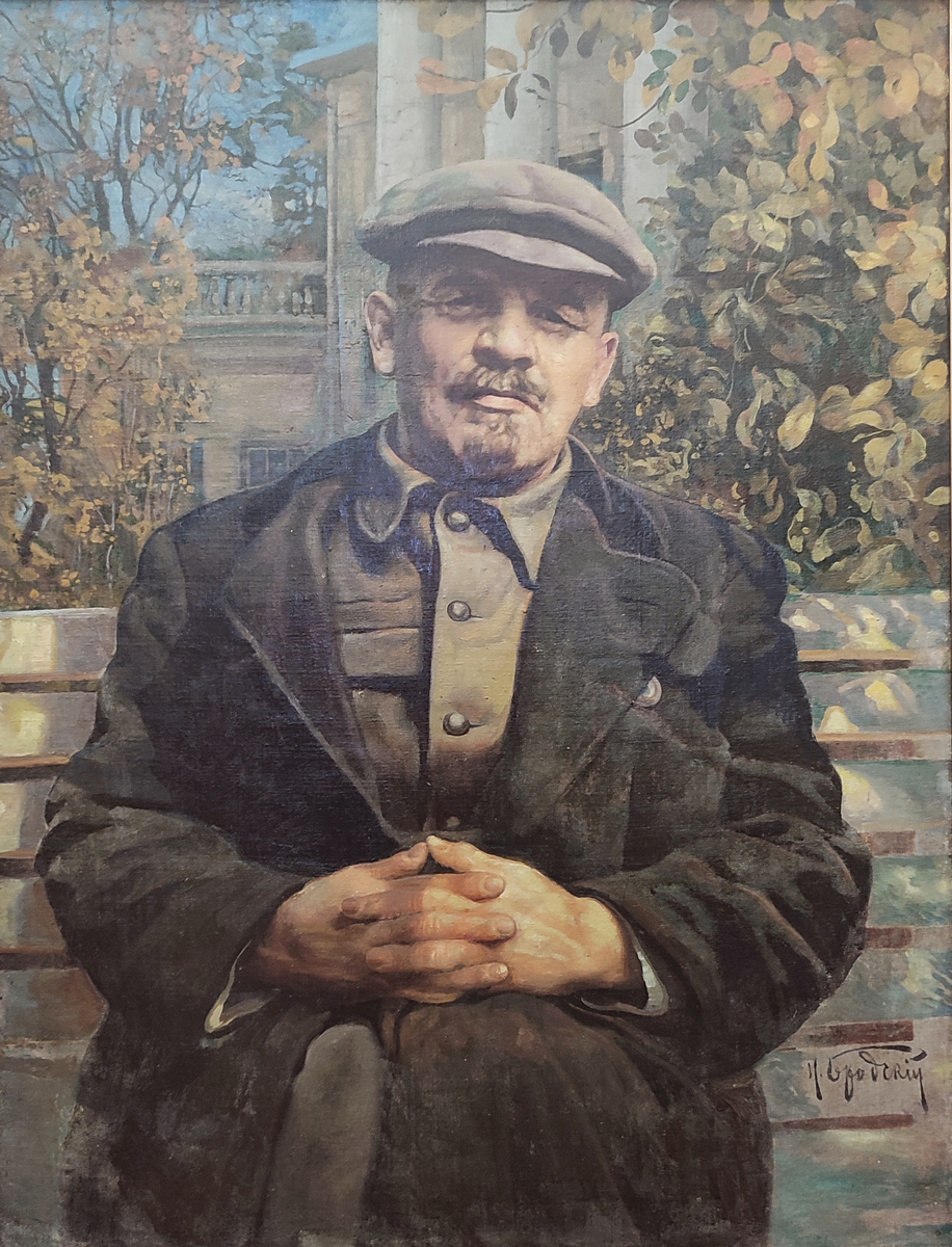 В начале XX века усадьбой Горки владела Зинаида Григорьевна, вдова фабриканта и мецената Саввы Морозова. После Октябрьской революции 1917 года усадьба "Горки" служила резиденцией В. И. Ленина, который приезжал туда отдыхать. Этому обстоятельству усадьба во многом обязана своей сохранностью и образцовым видом — в отличие от многих прочих дворянских усадеб, которые были разграблены и сожжены. Усадьба была телефонизирована, можно было отправлять телеграммы и звонить, правда, качество связи было плохое. После первого инсульта с мая 1922 г. до смерти 1924 г. В. Ленин жил в Горках постоянно. Когда здоровье позволяло, Ильич много гулял по парку, сохранялось много фотографий этого периода. На их основе и был сделан портрет вождя кисти И. Бродского. Очень красивая природа, яркие краски и расслабленная сидящая фигура создает очень светлое настроение.