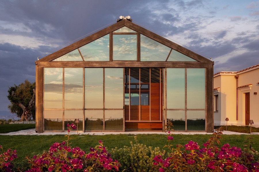 Главная изюминка — Lighthouse Suite: бывший маяк превращён в виллу с панорамой и зимним садом под раздвижной крышей. Натуральные материалы, авторская керамика и приватный сад с оливами создают уникальный уют.