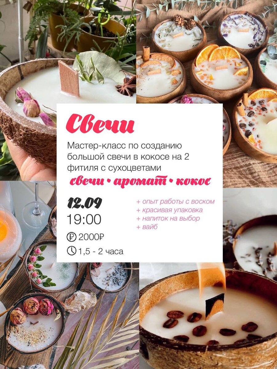 🕐12 сентября, 19:00 можно сотворить большие свечи в кокосе