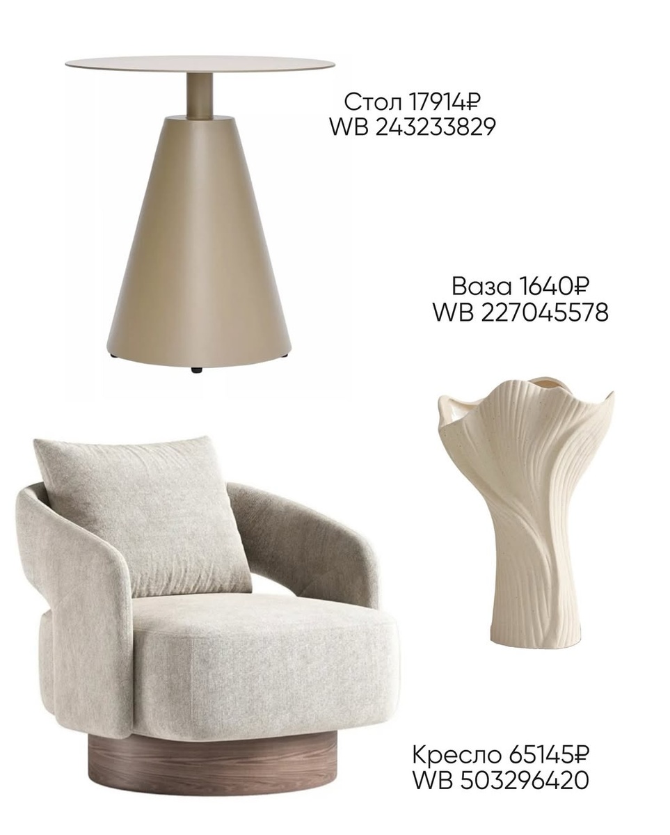 Хочу показать, как по фото собрать современную гостиную и спальню в нюдово-серой гамме с парой смелых акцентов. Ниже — каждая вещь строго по порядку с артикулом WB, детальным описанием и моим советом стилиста. Сохраняйте и повторяйте без долгих поисков.