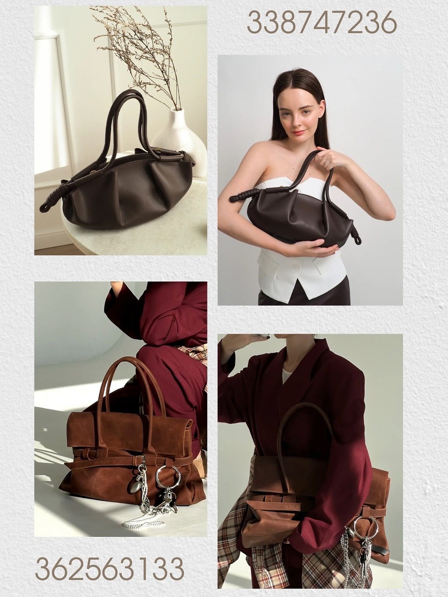 - Масштаб: чем шире плечи/оверсайз верх, тем крупнее сумка (и наоборот).