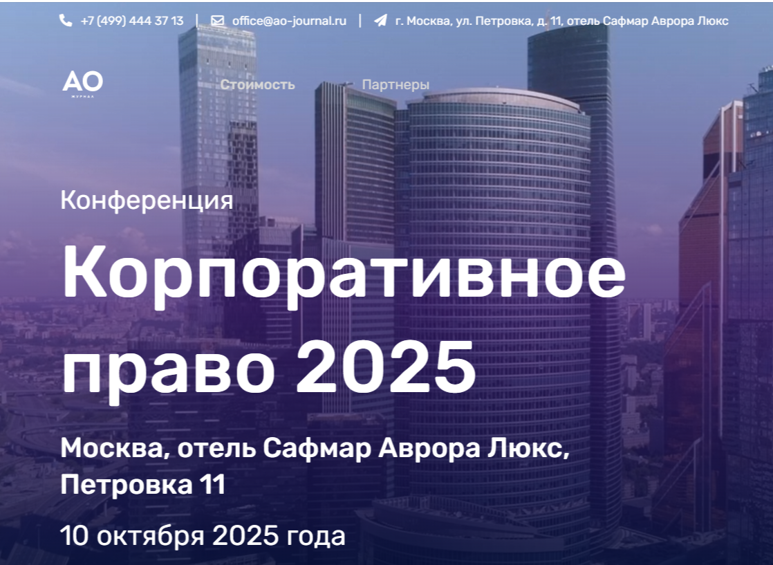 Коллега позвонил. В голосе слышался некий застой, огромное желание новых знаний, инсайдов, осенилов (инсайтов), эмоций, драйва. Еще раз проговорили про возможность поделиться знаниями, опытом - написанием статей. А потом ему рассказал про Конференцию «Корпоративное право» пройдет в 10 октября 2025 года (это кстати 8-я уже!!!)- главное мероприятие по корпоративному праву и управлению, на котором известные специалисты делятся своим опытом, дают рекомендации и делают прогнозы. Организатором выступает мой любимый журнал – «Акционерное общество».