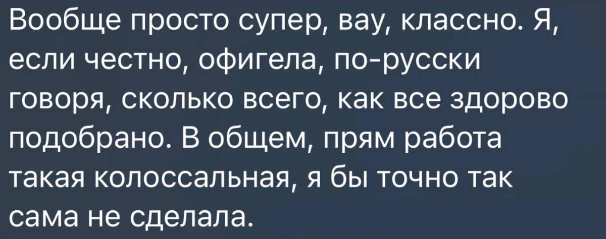 Недавно я сделала новую стратегию для психолога, и она оставила вот такой отзыв 💌 Вообще просто супер, вау, классно. Я, если честно, офигела, по-русски говоря, сколько всего, как все здорово подобрано. В общем, прям работа такая колоссальная, я бы точно так сама не сделала. Знаешь, я поймала себя на мысли: за последние два месяца это уже третий психолог, с которым я работаю. И мне всё больше хочется называть себя «маркетологом для психологов» ✔️Потому что я вижу, как сильно специалистам в этой нише нужна поддержка именно в продвижении: чтобы было понятно, как говорить о себе, как упаковать экспертность и как привести клиентов. И каждый раз, когда после стратегии мне пишут «теперь стало понятно и спокойно», я понимаю — я на своём месте. 📎Если ты тоже психолог (или эксперт), и хочешь получить стратегию для себя — приходи на бесплатную консультацию. Можно также просто задать вопрос прямо здесь, в комментариях — я обязательно отвечу 💻