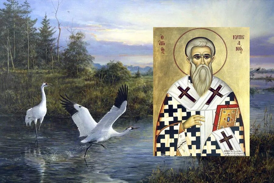 Православная церковь 13 сентября чтит память священномученика Киприана, епископа Карфагенского. На Руси этот день символизировал границу между времена года. Он также носил название Журавлинка или Журавлиное вече. Фасций Киприан родился и жил в III веке в Карфагене. Родители его принадлежали к числу знатных и благородных граждан. В юности Киприан получил хорошее светское образование, что помогло ему стать блестящим оратором. Свое мастерство он применил в преподавательском деле, Киприана избрали учителем риторики в карфагенском училище. Вплоть до 40 лет он оставался язычником, после чего осознанно перешел в христианство и принял крещение. Огромное влияние на его духовный выбор оказали труды богословов, которые он тщательно изучил. Доверив себя в руки Господа, Киприан отказался от пагубной и порочной жизни. Киприан раздал все имущество бедным и нуждающимся. Спустя два года после крещения он был поставлен епископом и практически сразу оказался в условиях гонения. За проповеди христианства