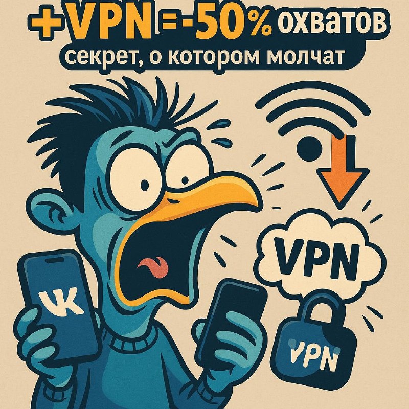 Многие не знают, но включённый VPN во «ВКонтакте» режет охваты сразу на 50%.