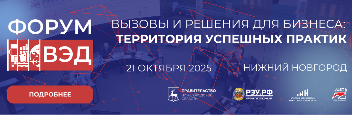 В условиях меняющейся глобальной экономики российскому бизнесу как никогда нужны проверенные решения и надежные партнеры. Куда двигаться экспортерам и импортерам? Как снизить затраты и наладить трансграничные платежи? Ответы на эти и другие острые вопросы дадут на крупнейшем отраслевом событии осени — Форуме ВЭД-2025, который пройдет 21 октября в Нижнем Новгороде. Это форум для тех, кто уже работает или только планирует выстраивать сотрудничество с дружественными странами. Здесь ждут руководителей, предпринимателей, логистов и всех, кто заинтересован в развитии внешнеэкономической деятельности (ВЭД). Почему это мероприятие важно? Форум ВЭД — это не просто конференция, а практическая площадка для роста и нетворкинга. За 5 лет в нем приняли участие более 17 500 человек из 8 стран и выступили свыше 260 экспертов-практиков. Масштаб говорит сам за себя. Организаторы подготовили насыщенную программу, сфокусированную на самых болезненных темах для бизнеса: * Интеграция регионов России в ВЭД: