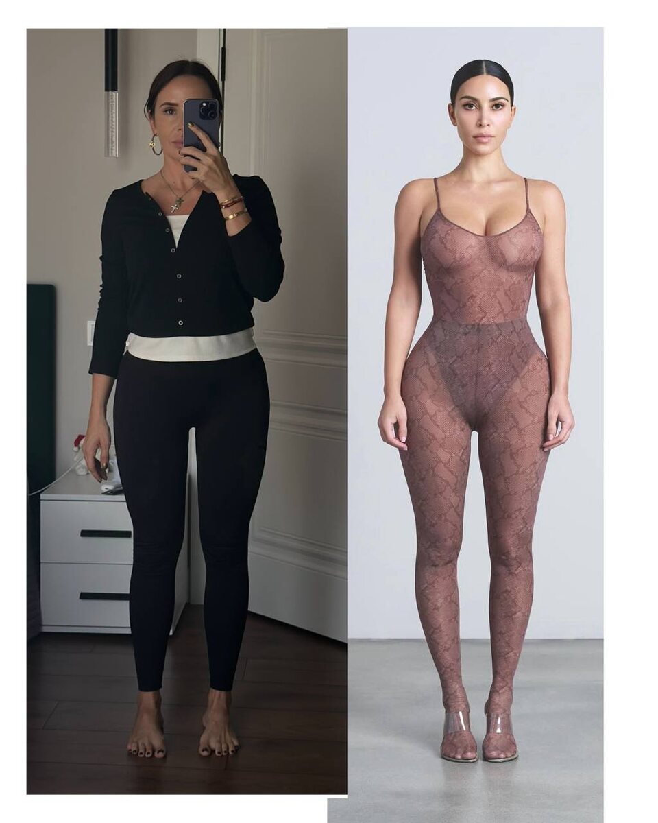 Если спросите меня, какая сейчас цель визуально по фигуре… то вот. Узнали, кто это? 😂 На фото, кстати, видно - в разнице пропорций моих и ее - у нее ноги визуально редактором вытянуты чутка. Рука не там по высоте)