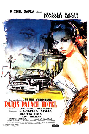 Париж, Палас отель / Paris, Palace Hôtel. Франция-Италия, 1956. Режиссер Анри Вернёй. Сценаристы: Шарль Спаак, Анри Вернёй. Актеры: Шарль Буайе, Франсуаза Арнуль, Роберто Риссо, Тильда Тамар, Жорж Шамара, Луи Сенье, Симона Бах, Дарри Коул, Рене Женен и др. Комедия. Мелодрама. Премьера: 19.10.1956. Прокат во Франции: 2,3 млн. зрителей.