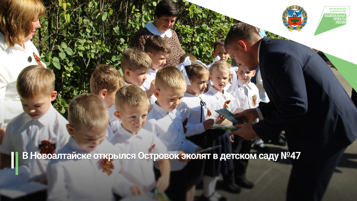 В детском саду №47 города Новоалтайска прошло торжественное открытие «Островка эколят» — новой площадки для экологического воспитания дошкольников. Проект реализуется в рамках природоохранного социально-образовательного проекта «Эколята — Дошколята» и направлен на формирование у детей культуры природолюбия и заботы о родной природе.