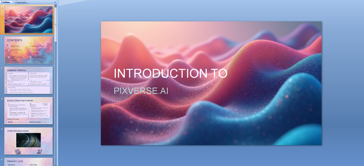Этот шаблон идеально подходит для тех, кто хочет представить свой продукт или компанию с профессиональным и современным видом. Он сочетает в себе абстрактный и привлекательный дизайн, который подчеркивает инновационность и технологичность.