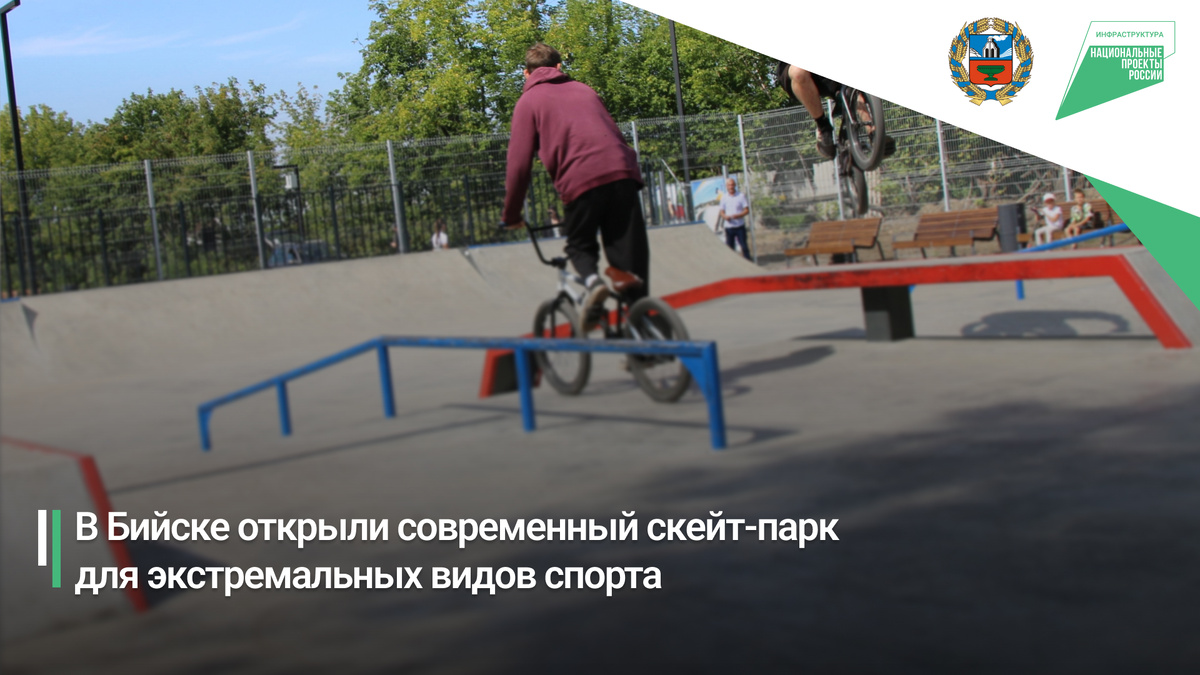 29 августа в Бийске торжественно открыли новый скейт-парк — современную площадку для занятий экстремальными видами спорта, ставшую подарком для активной молодежи. Реализация проекта стала возможна благодаря федеральной программе «Формирование комфортной городской среды» в рамках нацпроекта «Инфраструктура для жизни».