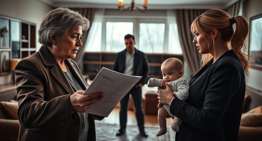 Марина отступила на шаг, прижимая к груди полугодовалого сына. Её руки дрожали, но взгляд оставался твёрдым. То, что происходило в их квартире последние полчаса, больше напоминало дурной сон, чем реальность.