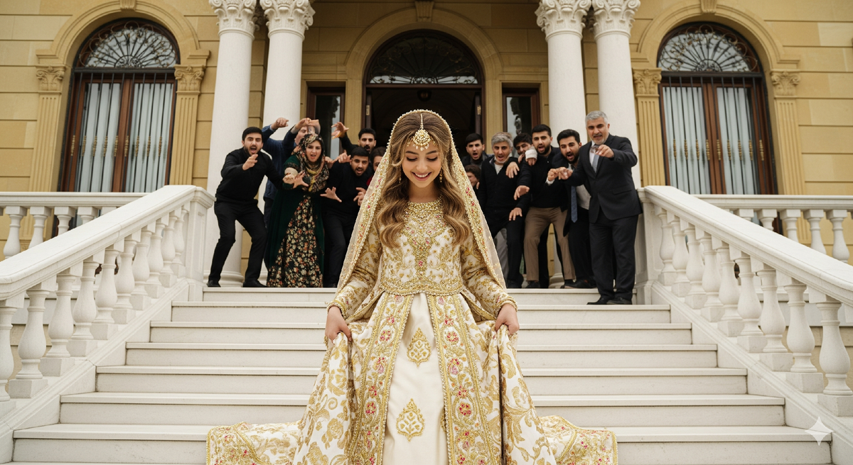 В аэропорту их встречала огромная, шумная толпа людей. Как оказалось, это всё были его родственники. Их привезли в огромный, богато украшенный дом. Шум, суета, громкие разговоры на незнакомом языке, десятки новых лиц.
