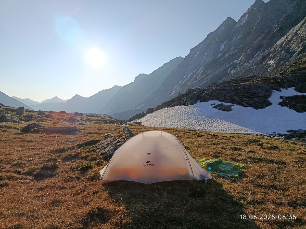 В конце концов, решили поставить палатку и заночевать. А завтра с утра штурмовать перевал при хорошей погоде.
