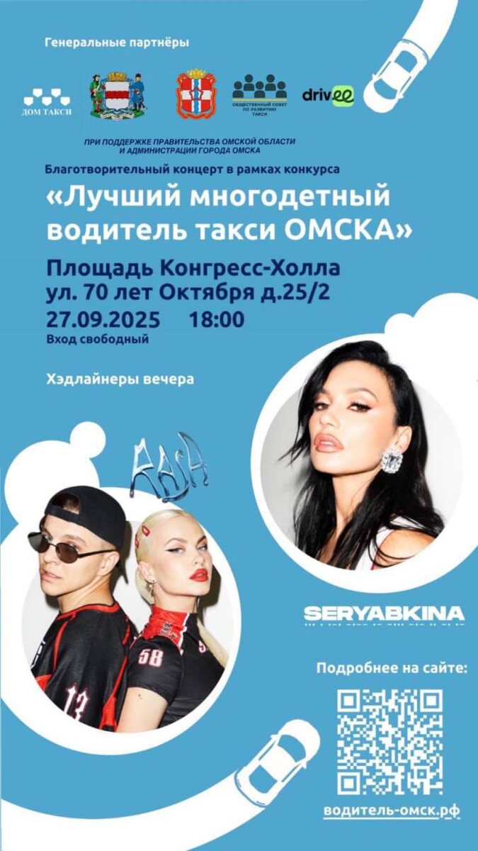 👶 В Омске выберут лучшего многодетного водителя такси 📍27 сентября приглашаем всех на площадь у Конгресс-Холла (Омск, ул. 70 лет Октября, 25/2). Начало – в 11:00. 🏆 Главный приз – автомобиль LADA VESTA. За 2-е и 3-е места – крупные денежные призы. Всем девушкам-участницам – отдельный сюрприз. К участию приглашаются водители такси, воспитывающие трёх и более детей. 📌 В программе мероприятия: – выставка отечественных электромобилей и электробуса, – новые зарядные станции, – современное медоборудование для предрейсовых осмотров. 🎙 Завершением станет благотворительный концерт. На сцену выйдут Ольга Серябкина и группа RASA! Для маленьких зрителей будут организованы конкурсы на электромобилях, викторины по ПДД и розыгрыш главного приза – детского электромобиля. Цель конкурса – поддержать многодетные семьи и повысить престиж профессии водителя такси. 👉 Узнайте больше о конкурсе по ссылке.