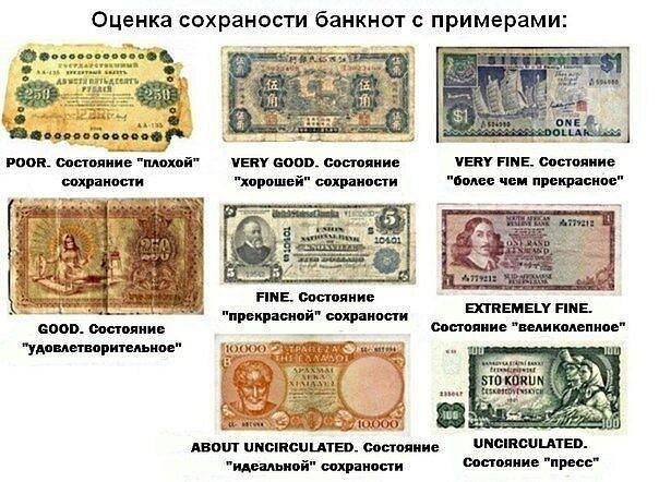 Есть следы обращения, возможно один сильный перегиб или несколько лёгких. При этом купюра сохраняет привлекательный внешний вид. 4. VF (Very Fine) – очень хорошее состояние.