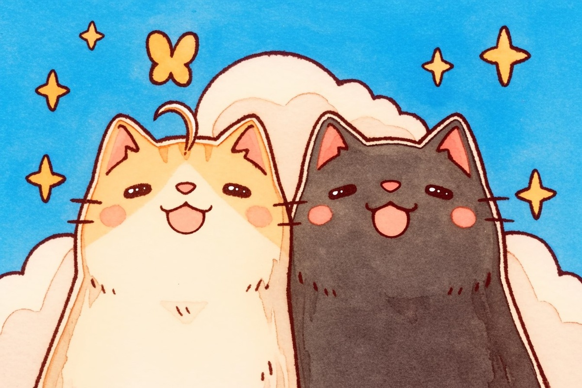 Привет, солнышко! Сегодня, как эти два милых котика, я просыпаюсь с ощущением гармонии и позитива. Пусть этот день будет таким же ярким и добрым, как небо и облака за их спинами. Я верю в лучшее и готова делиться своей радостью со всеми вокруг!