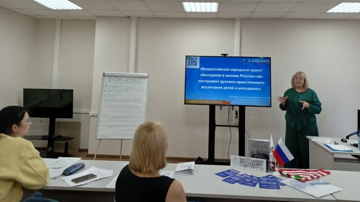 🆕 Приморский край, ДВФО Татьяна Анатольевна Мамоненко, учитель русского языка и литературы МАОУ СОШ № 22 г. Южно-Сахалинска, активно делится с коллегами опытом реализации проекта «Киноуроки в школах России»! 26 августа 2025 года Т. А. Мамоненко приняла участие в августовском педагогическом совещании работников системы образования Сахалинской области. Татьяна Анатольевна выступила с докладом на тему «Всероссийский народный проект «Киноуроки в школах России» как инструмент духовно-нравственного воспитания детей и молодёжи», познакомила коллег с содержанием проекта и поделилась опытом его реализации на примере своего класса: «В этом году у меня новый класс, новый коллектив. Я продолжаю участие в проекте, и мы с ребятами вместе принимаем решения, когда провести киноурок, какой будет социальная практика». 9 сентября 2025 года в рамках повышения квалификации заместителей директора по воспитательной работе «Разработка и внедрение рабочей программы воспитания и календарного плана воспитате