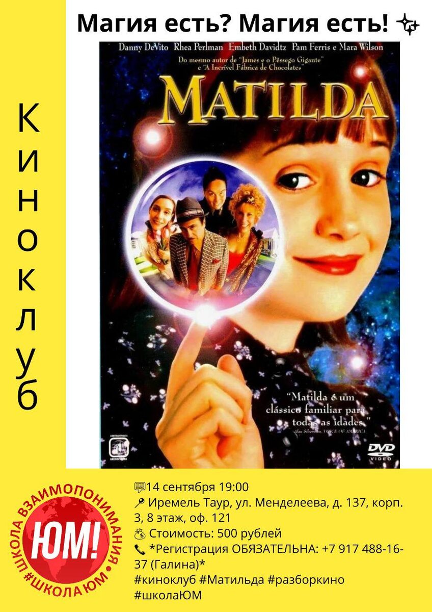 *Киноразбор: фэнтези-шедевр «Матильда» (1996)* Дорогие любители кино! Киноклуб #пофрейду приглашает вас на разбор культового фильма в жанре фэнтези — «Матильда» (США, 1996). Этот фильм — не просто добрая сказка для семейного просмотра. Это глубокая история о силе знаний, важности справедливости и победе доброго сердца над невзгодами. В программе вечера: · Просмотр фильма (98 минут) в комфортной атмосфере. · Профессиональный разбор от ведущей Юлии Михайловны: анализ режиссерских приемов, скрытых символов и психологии персонажей. · Интересная дискуссия. Мы увидим, как Роальд Даль и Дэнни ДеВито создали мир, где магия — это метафора ума и внутренней силы. Дата и время: 14 сентября, 19:00 Место проведения: Иремель Таур, ул. Менделеева, д. 137, корпус 3, 8 этаж, офис 121. Стоимость участия: 500 рублей. Регистрация: Обязательна по телефону +7 917 488-16-37 (Галина).