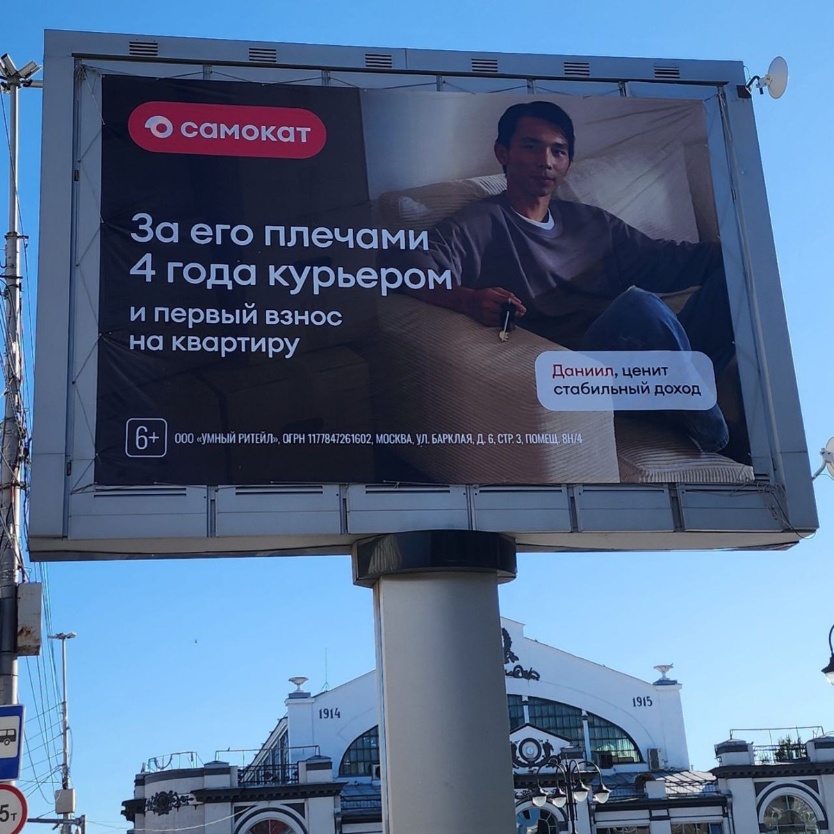 Выглядит как билет в безнадежность Гулял вчера мимо цирка в центре Саратова и увидел этот баннер. Мне сильно режет оффер: «4 года курьером и первый взнос на квартиру». Серьезно? И этот оффер должен зацепить молодого парня? Цветовая гамма тоже какая-то депрессивная. Хотя, может, я уже проецирую первое ощущение на остальные детали, хз. Мне кажется, можно сделать это предложение намного более привлекательным. На соседнем баннере и плакатах на остановке рядом платят 3,5 млн в первый месяц и 6,5 млн в первый год сами знаете где. Учитывая, что ЦА одна, а эти ребята в большинстве хотят быстрее испить жизнь до дна, то для них очевидно, какой вариант выгоднее. Что думаете: это самокат зафейлил? Это заговор и везде один заказчик? Или я с ума сошел и с рекламой всё ок? На канале не обсуждаем политику. Мы тут про маркетинг.