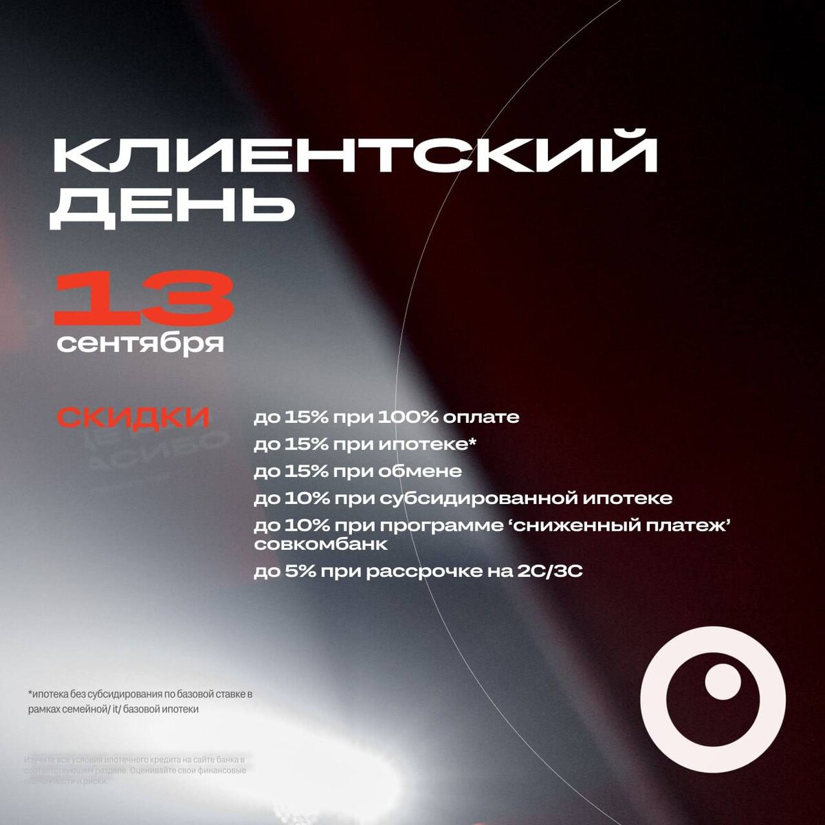 Ой ребята, что вас ждет🙈 Записывайся с нашим специалистом на клиентский день в Бруснику 13 сентября и получи самые выгодные условия покупки🔥 На прошлом клиентском дне, мы согласовали клиенту скидку 1500 000 р. Что еще будет: - Скидка до 15% при 100% оплате - Скидка до 15% при ипотеке [ипотека только при базовой ставке/ без субсидий!] - Скидка до 15% при обмене - Скидка до 10% при субсидированной ипотеке — 4.6% на весь срок по семейной ипотеке, 5.9% на 12 мес по классике новостройке для всех - Скидки до 10% при программе 4% для всех - Скидка до 5% при рассрочке на 2С/3С Пиши «+», запишем тебя на клиентский день👇