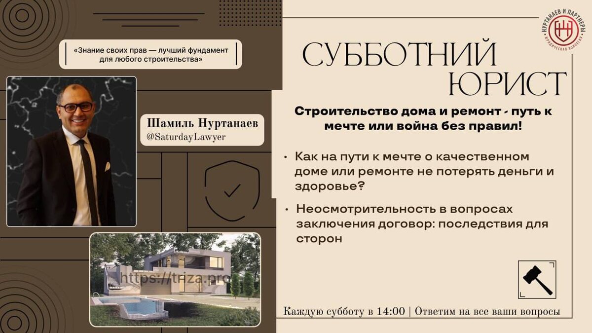 ⚖️ Эфир проведет юрист с более, чем 20 летней практикой – Шамиль Нуртанаев (нажав на имя вы можете узнать о юристе больше).
