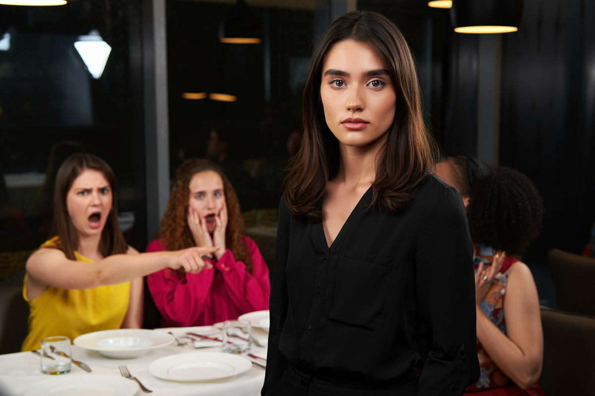 Обеденное время в ресторане всегда особенное. Посетители неспешно наслаждаются едой, официанты скользят между столиками, а на кухне кипит привычная работа. За угловым столиком расположились три женщины, чей громкий смех и резкие голоса выделялись на фоне приглушённых разговоров других гостей.