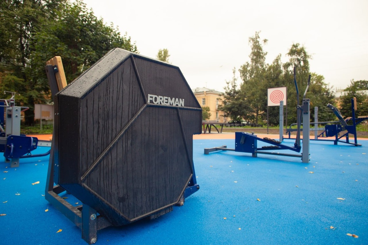 На ней уложили шумопоглощающее покрытие, разместили уличные тренажеры и новые теннисные столы. Разметка для прыжков в длину с места и для метания мяча сделает возможной сдачу нормативов ГТО. На территории вокруг площадки засеян газон и установлены малые архитектурные формы.