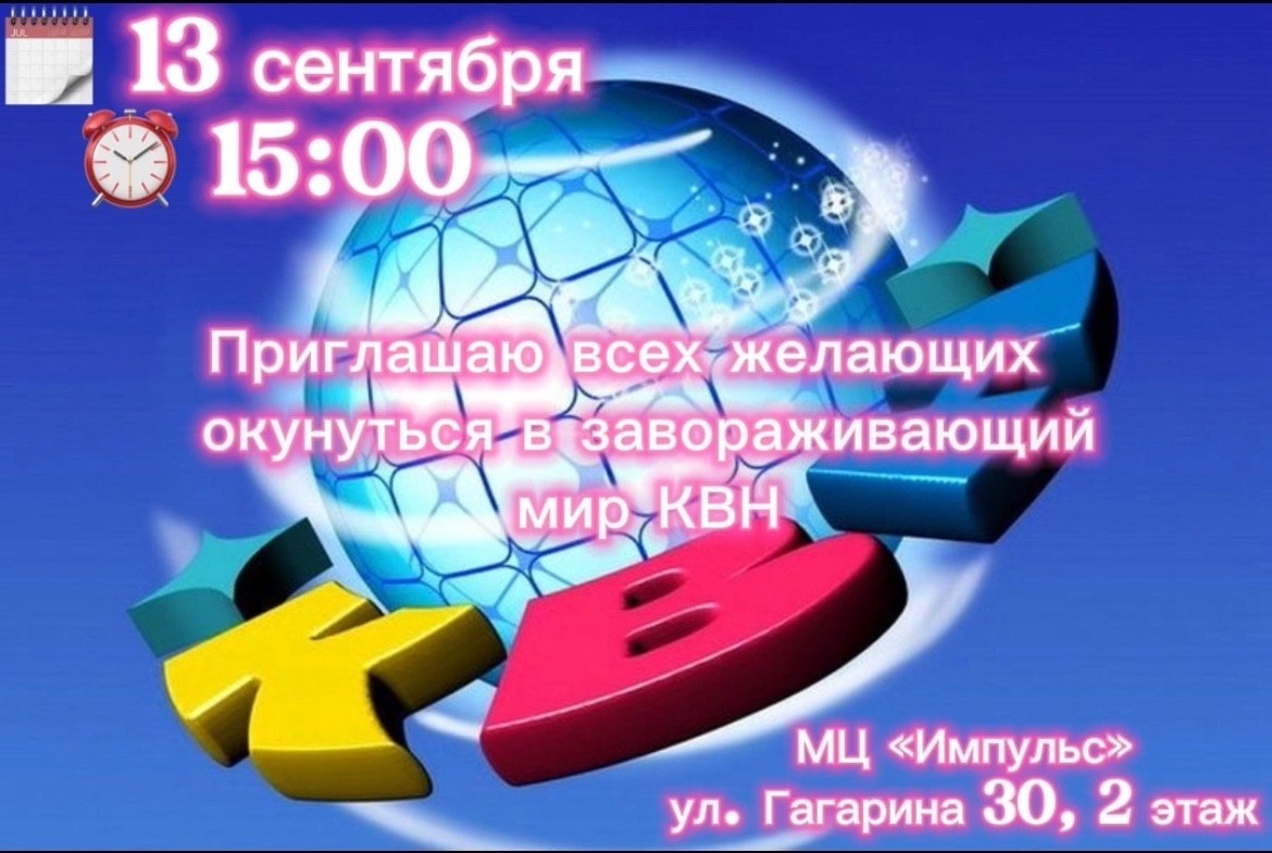 13 сентября в молодежном центре «Импульс» пройдет встреча для поклонников КВН