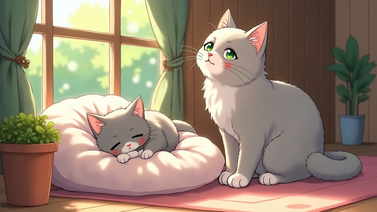 Жил-был в маленьком домике котёнок по имени Мурзик. Он был пушистый, с белыми лапками и длинными усами. Мурзик очень любил спать и кушать, а вот помогать и работать — совсем не любил. — Мурзик, вынеси, пожалуйста, мусор, — просила его мама-кошка.
