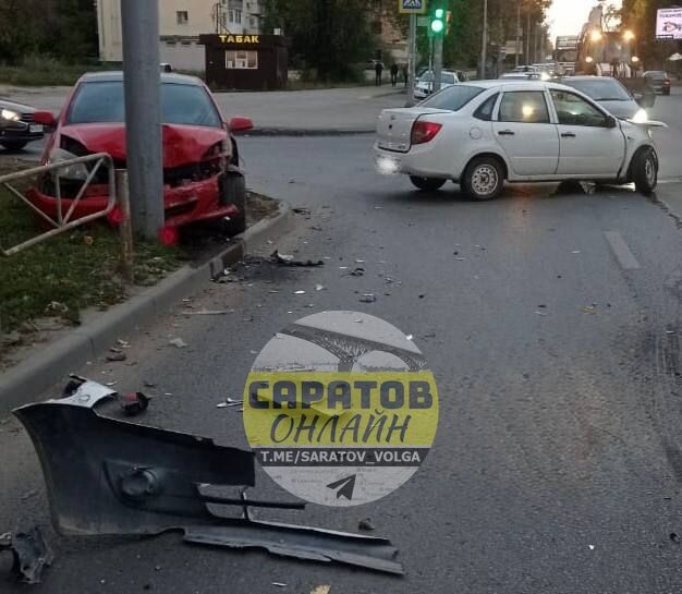 В Саратове «Опель» столкнулся с «Грантой» и врезался в столб