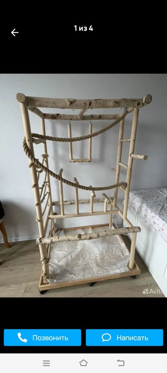 ⏪ ВЫБОР ИГРУШЕК И СТЕНДОВ⏩ Или чего стоит избегать при выборе. Владельцы попугайчиков нередко закупаются всевозможными игрушками и стендами для своих любимцев. Для деревянных игрушек идеальным вариантом было бы делать их самостоятельно и регулярно менять, но, к сожалению, не у всех есть необходимый инструмент, место и время для изготовления. И в таком случае лучше их брать у проверенных продавцов, которые изготавливают свои товары из свежего материала, ОБЯЗАТЕЛЬНО изолированного от имеющихся животных, в особенности птиц. ✔️Допустим, открывая платформу Авито, мы видим большое количество стендов и игрушек из дерева для попугаев, сомнительного производства и/или некогда бывшие в употреблении, но не подошедшие, либо, что еще хуже, после погибшего питомца. Будь я обывателем, быть может, повелась на дешевые стенды и побрякушки б/у. Но имея те знания, что сейчас, я точно не собираюсь подвергать своих птиц потенциальной опасности. Как это связано? На поверхностях этих товаров очень часто о