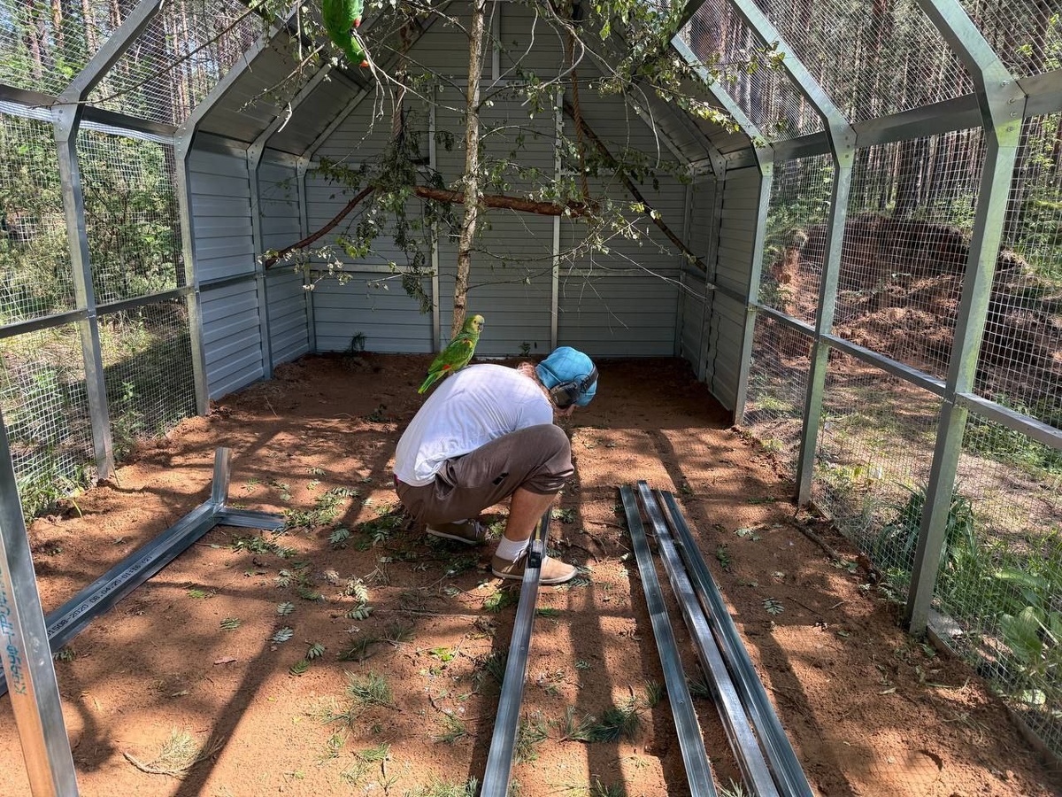 Делают предбанник, а Гриня пришла помочь. Она такое любит, да.