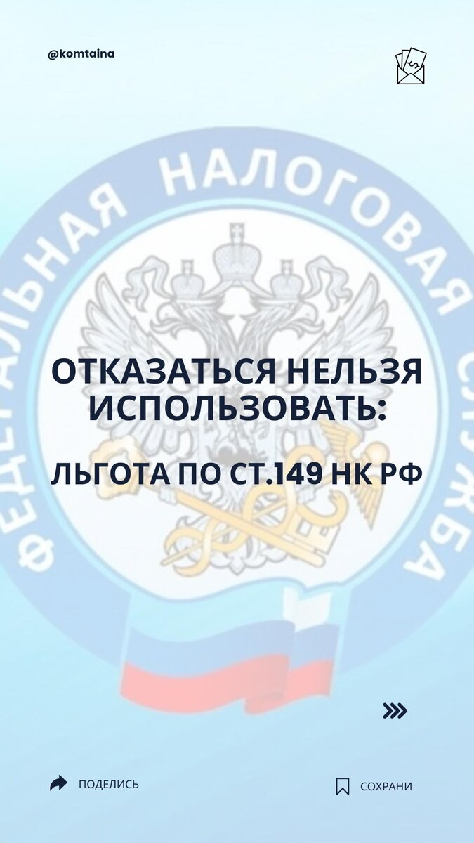 ❗️ ОТКАЗАТЬСЯ НЕЛЬЗЯ ИСПОЛЬЗОВАТЬ: льгота по ст.149 НК РФ История одного музея показала, как попытка отказаться от налоговой льготы оборачивается спором с налоговой и судами. 👉 А чтобы не было проблем с НДС — переходите в Telegram-сервис и уже будете подстрахованы и даже вернете вычеты. Это ваша настоящая страховка, проверенная сотнями клиентов. @komtaina