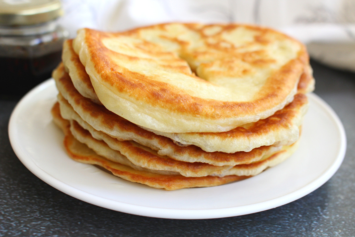На днях готовила быстрые лепешки, а по этому рецепту лепешки придется немного подождать. Результат стоит ожиданий. Удивительно, но при таких простых и доступных ингредиентах, просто великолепный вкус! Пока эти лепешки горячие, они улетают со стола мгновенно. Лепешки как пух, мягкие, невесомые, пышные. Их можно есть даже просто так, без дополнений. А можно подать с чем-то сладким или наоборот несладким. Если вы любите подобные блюда, лепешки, пышки, то могу сказать с уверенностью, взрослый человек съест 5-6 таких лепешек. Из этого количества ингредиентов получается 7-8 небольших лепешек. Поэтому если у вас большая компания и вы подадите горячие лепешки сразу к столу, то делайте двойную, а то и тройную порцию.