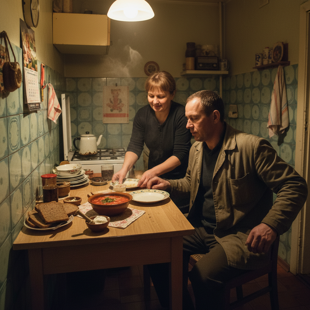 Муж вернулся из командировки вечером, когда подъезд уже пахнет ужинами. Я сварила борщ, кинула чеснок в ступку, растёрла с солью — как меня учила соседка. Поставила хлеб, сметану, тарелки. Владислав вошёл тихо, бросил сумку у шкафчика, чмокнул меня в висок. Вид у него простой: рабочая куртка, широкие плечи, руки чуть обветренные. Не герой с открытки. Но мой.