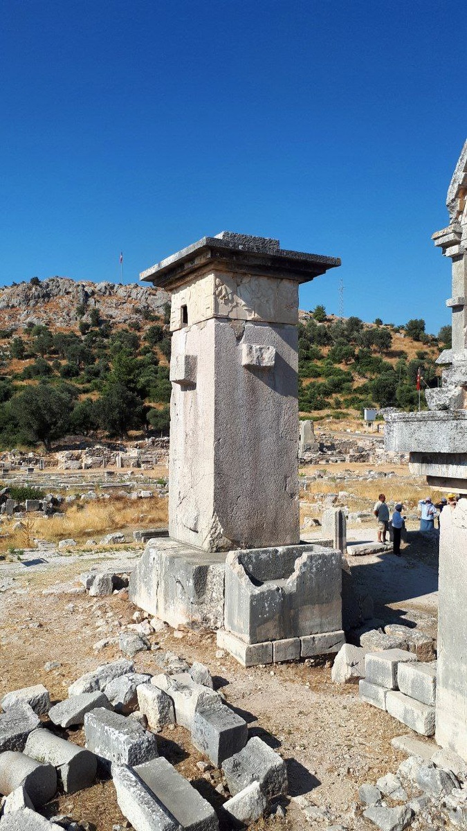 Мраморные стеллы (гробницы Гарпии) в Ксантосе с копиями барельефов. Оригиналы были вывезены из Турции в Британский музей в Лондоне.