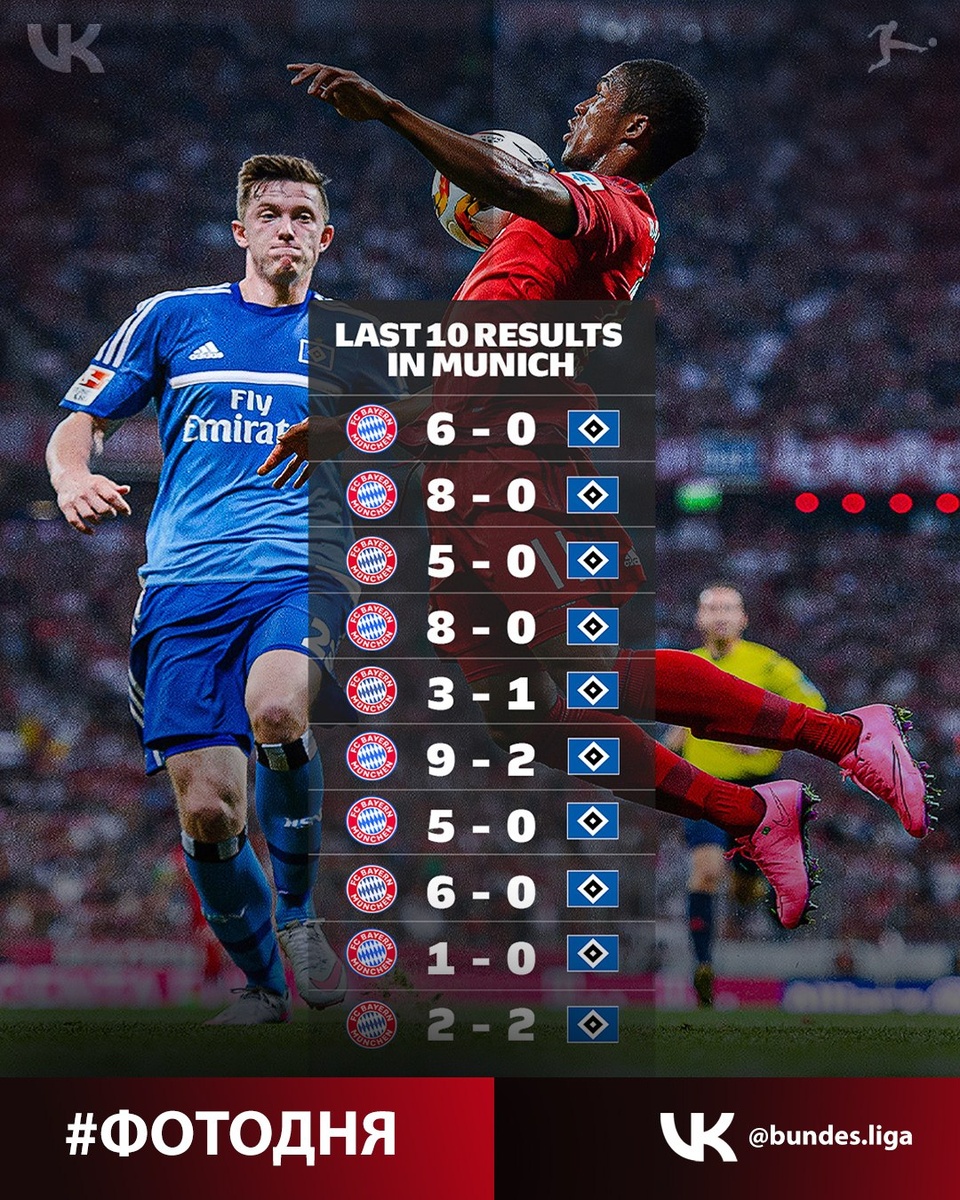 #ФотоДня 😬 И о погоде 🌤 В субботу Мюнхене будет жарко, как и на всей территории Германии. Пасмурно только в Гамбурге, где лучше сидеть дома и ... не включать телевизор 📺😂 *статистика последних 10 матчей "Баварии" и "Гамбурга".