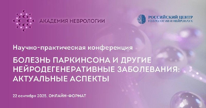 Уважаемые коллеги! 22 сентября 2025 года в формате онлайн состоится научно-практическая конференция «Болезнь Паркинсона и другие нейродегенеративные заболевания: актуальные аспекты», в рамках образовательной программы «Академия неврологии». Организационный комитет: • Иллариошкин Сергей Николаевич, заместитель директора по научной работе ФГБНУ РЦНН, академик РАН. • Гнедовская Елена Владимировна, заместитель директора по научной и научно-организационной работе ФГБНУ РЦНН, член-корреспондент РАН. • Федотова Екатерина Юрьевна, заведующая 5-м неврологическим отделением с молекулярно-генетической лабораторией ФГБНУ РЦНН, д.м.н. Ключевые темы: • Афатические нарушения как проявления нейродегенеративных заболеваний • Болезнь Гентингтона • Индуцированная конверсия белка – новая технология в диагностике нейродегенеративных заболеваний • Дистонии: пересмотренная классификация MDS от 2025 г. и многие другие. Программа конференции аккредитована 3 баллами НМО. Участие бесплатное. Подробнее по ссы